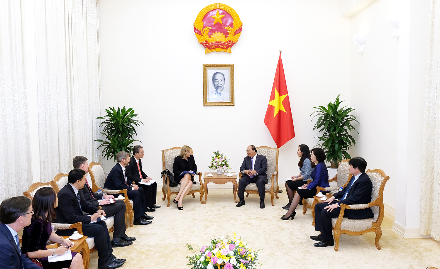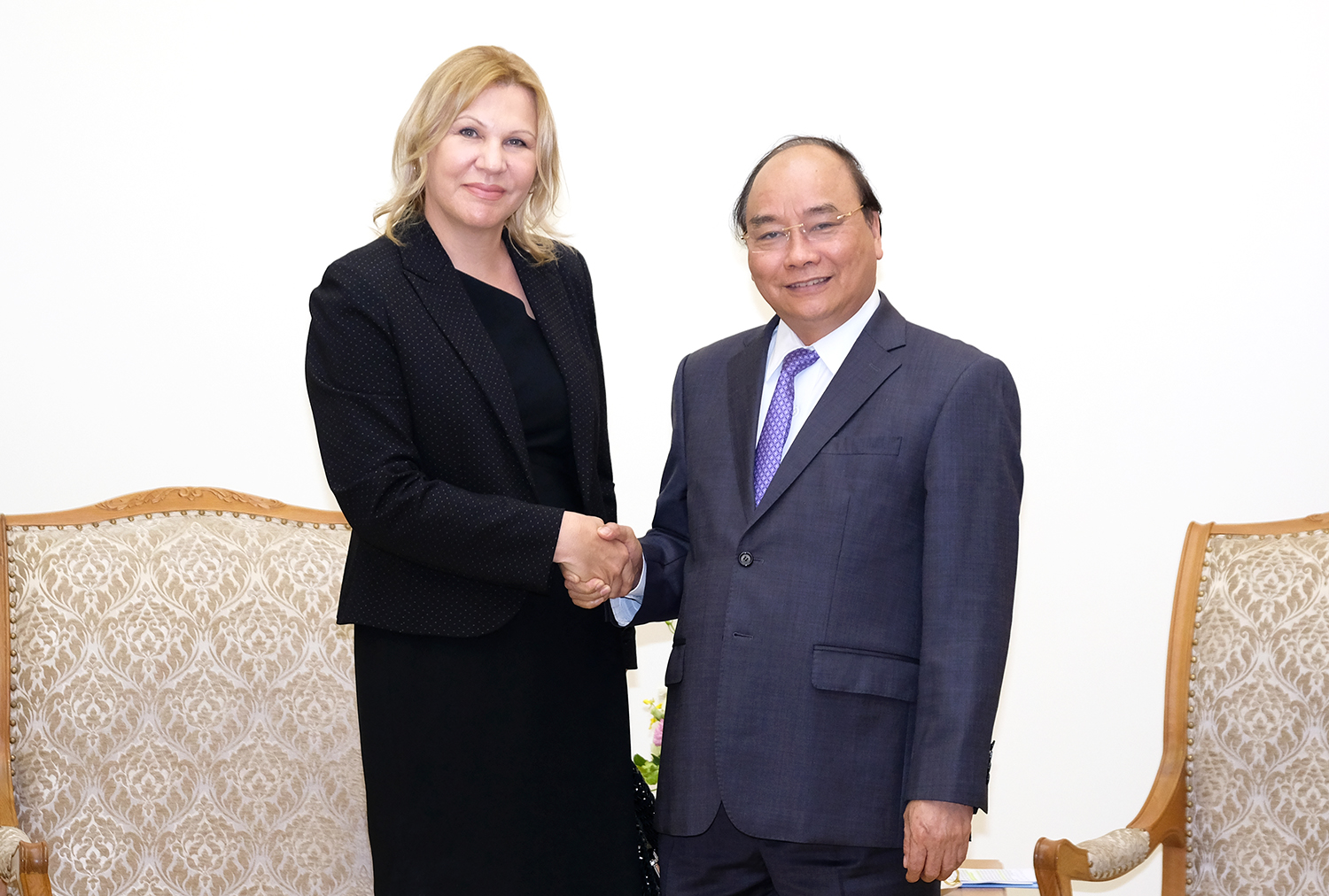 Thủ tướng Nguyễn Xuân Phúc tiếp bà Nena Stoiljkovic, Phó Chủ tịch Tổ chức Tài chính Quốc tế (IFC) phụ trách khu vực châu Á-Thái Bình Dương. Ảnh: VGP/Quang Hiếu