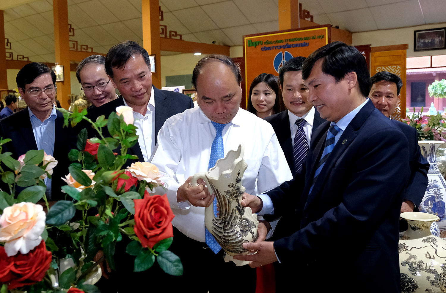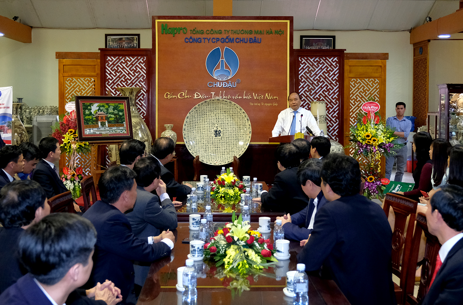Tham quan những sản phẩm gốm mang những nét thuần Việt riêng biệt của văn hóa truyền thống, Thủ tướng hoan nghênh tỉnh Hải Dương và Tổng Công ty Hapro đã hợp tác phát triển Công ty Cổ phần Gốm Chu Đậu, từ đó phục hưng sản phẩm lịch sử truyền thống của dân tộc.